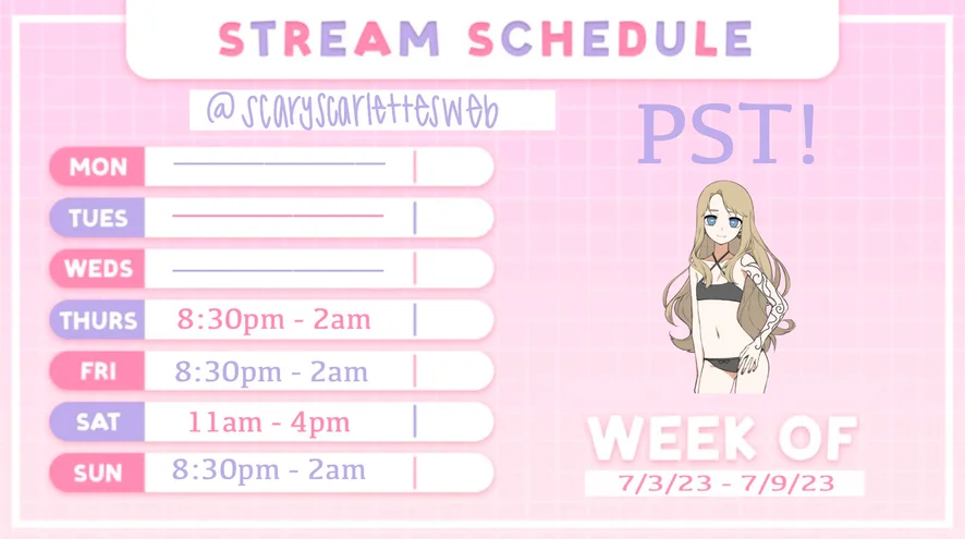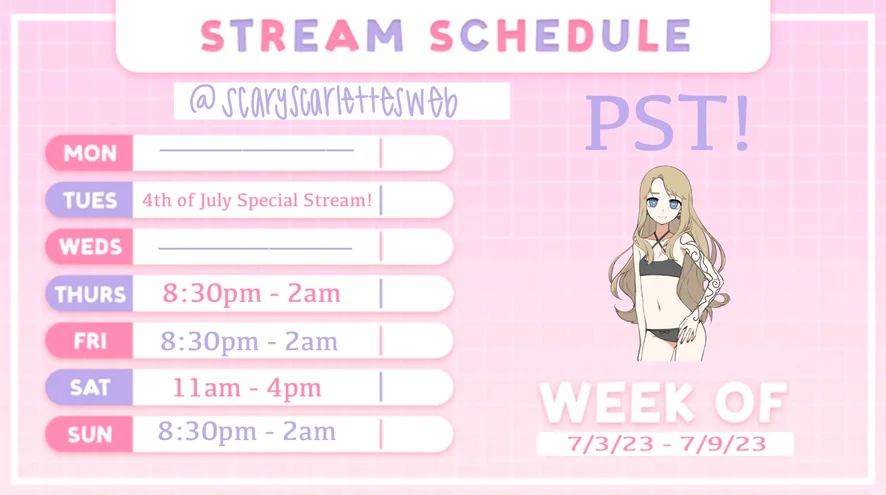 Updated 7/3 - 7/9 schedule
